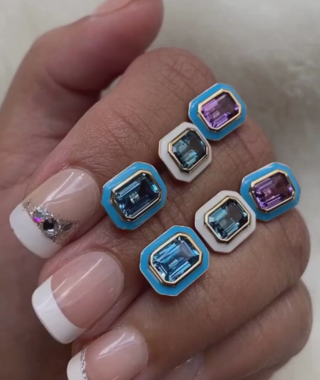 Emerald Cut Studs with Enamel