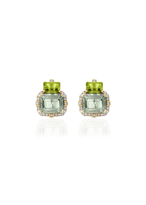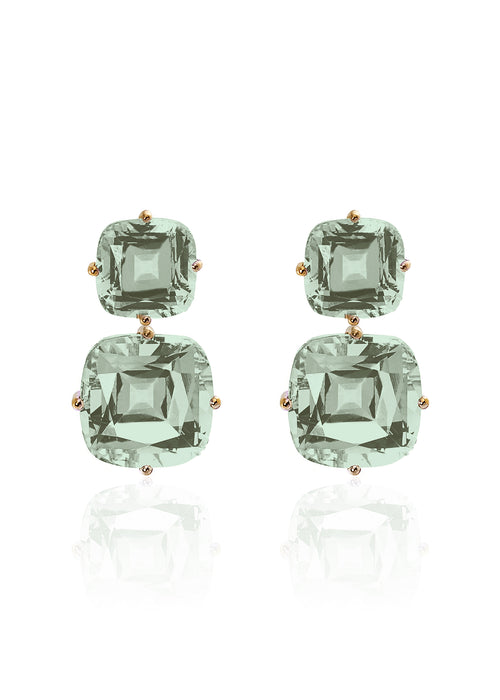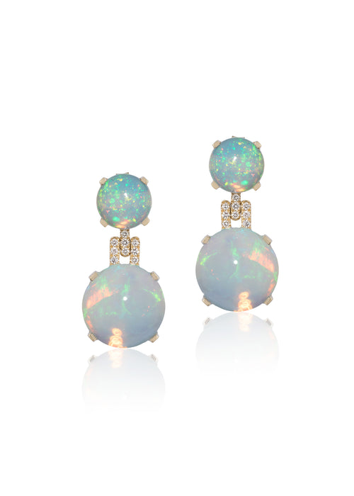 The bold teardrop silhouette is suspended from a slender, pavé-lined bar, anchored by a round cabochon stud—creating a refined, elongated line that moves with effortless fluidity.