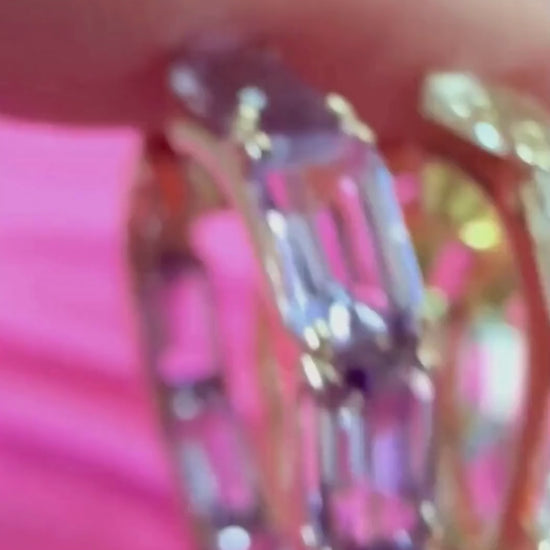 Shaped with subtle curves and edged in precision-set baguettes, these heart hoops strike a balance between playful romance and architectural edge.