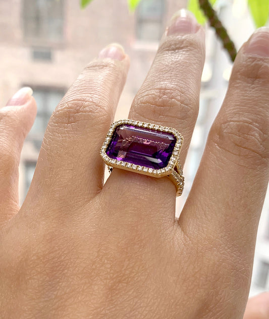 East-West Ring with Diamond Halo