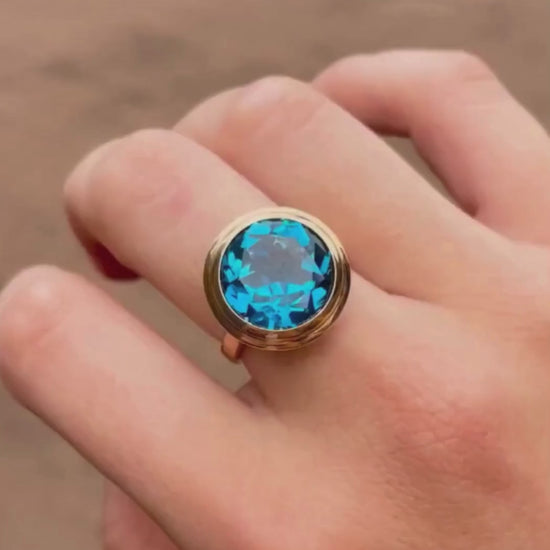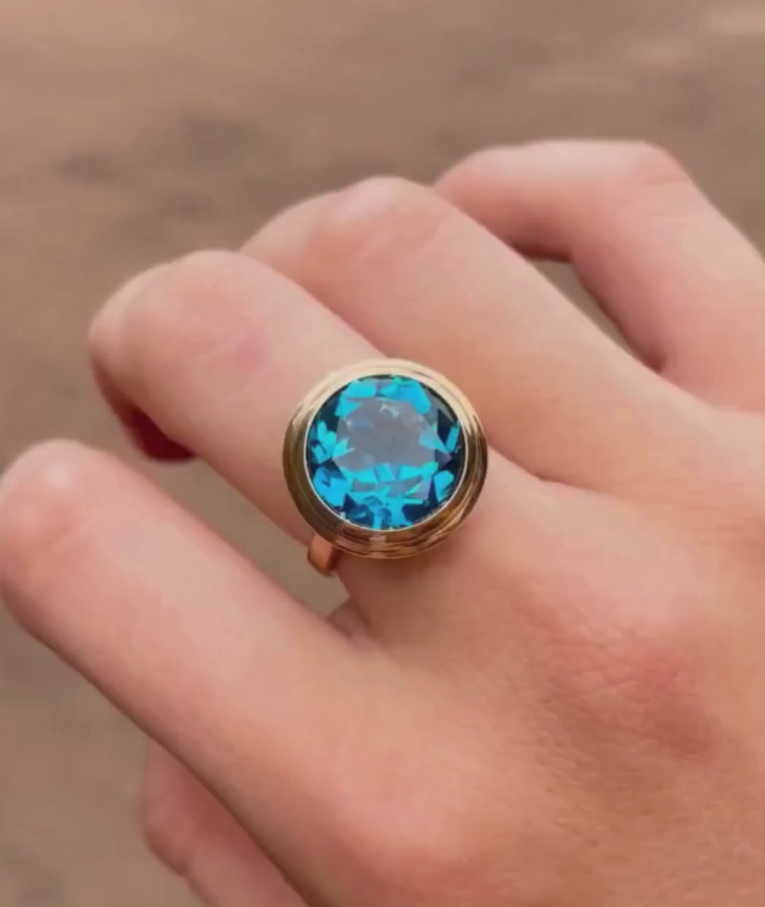 The Manhattan Round Cocktail Ring balances bold volume with refined grace — a seamless bezel setting and airy gallery come together in a statement of sculptural elegance