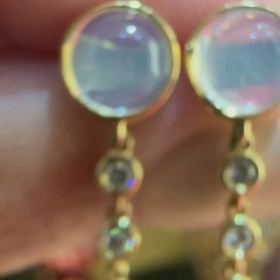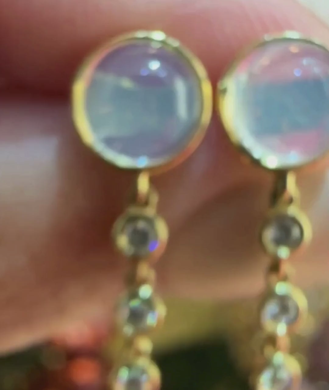 These elegant long earrings in 18K yellow gold feature a smooth cabochon design with a graceful drop shape. The diamonds enhance the piece, adding a brilliant touch that perfectly complements the striking design.