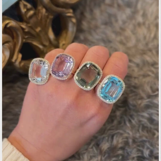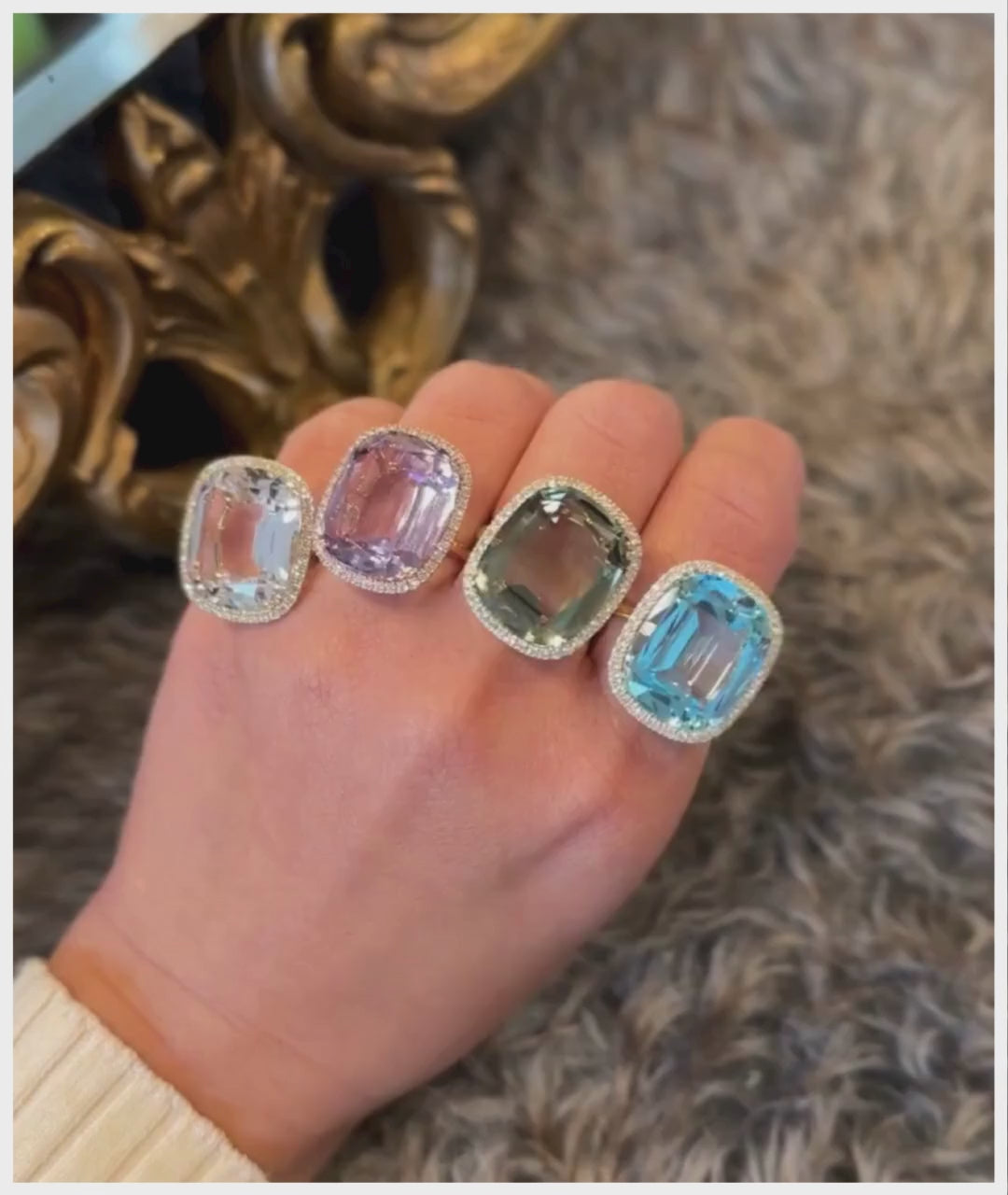 Bold and unapologetic, this oversized cushion-cut ring makes a luminous statement in true Gossip fashion.