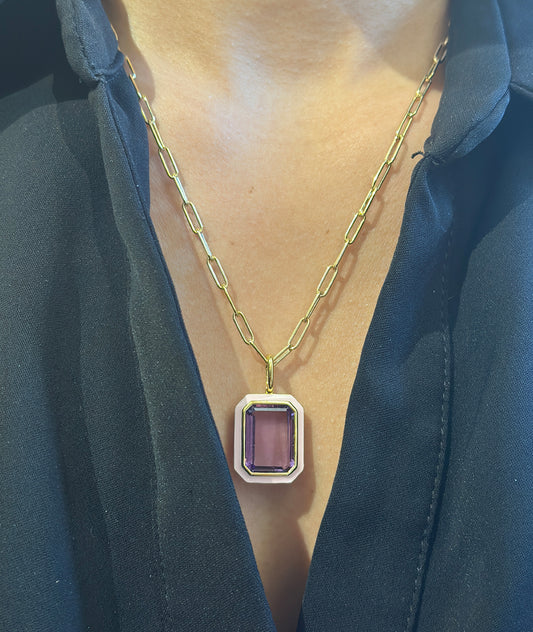 Emerald Cut Enamel Pendant