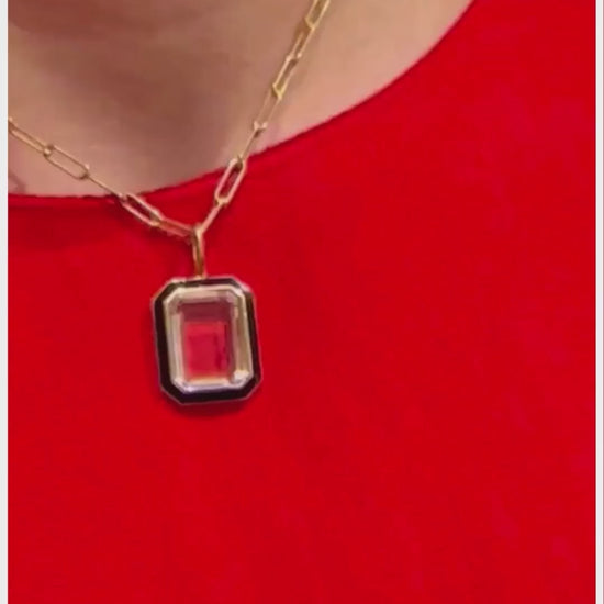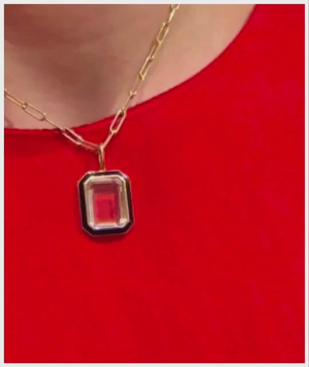 A quiet radiance flows from every facet—cradled in bold contours and framed with a whisper of enamel, this pendant moves like a modern ode to timeless grace.