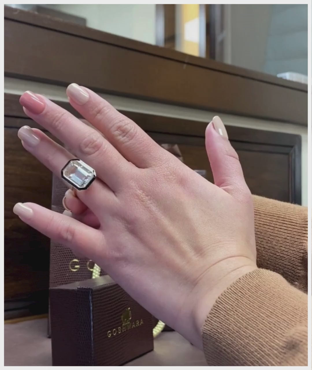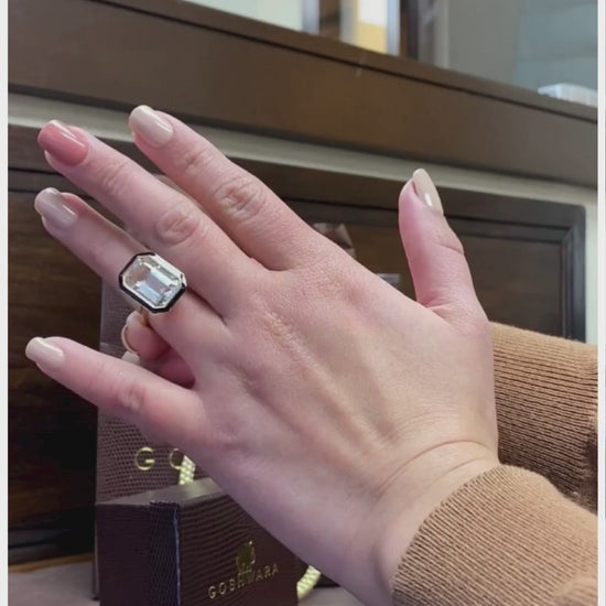 Boldly framed in glossy enamel, the Queen Emerald-Cut Ring commands attention with its sharp lines and regal presence — a confident fusion of color and contour.
