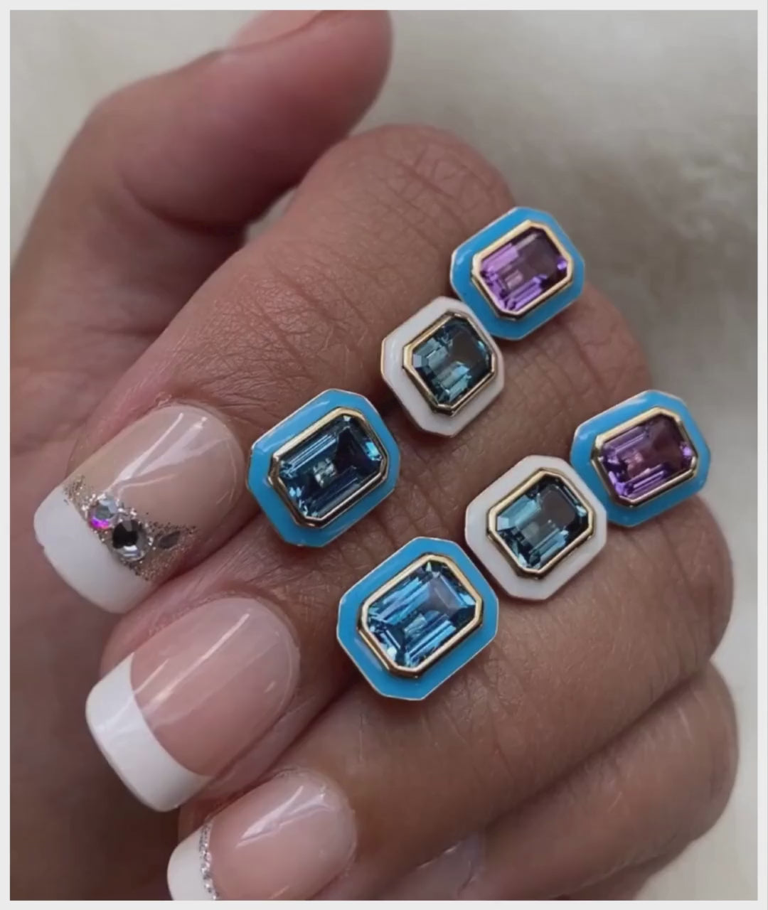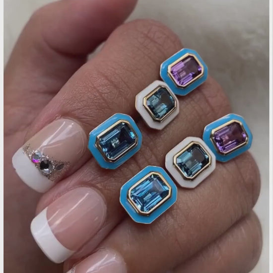 Emerald Cut Studs with Enamel