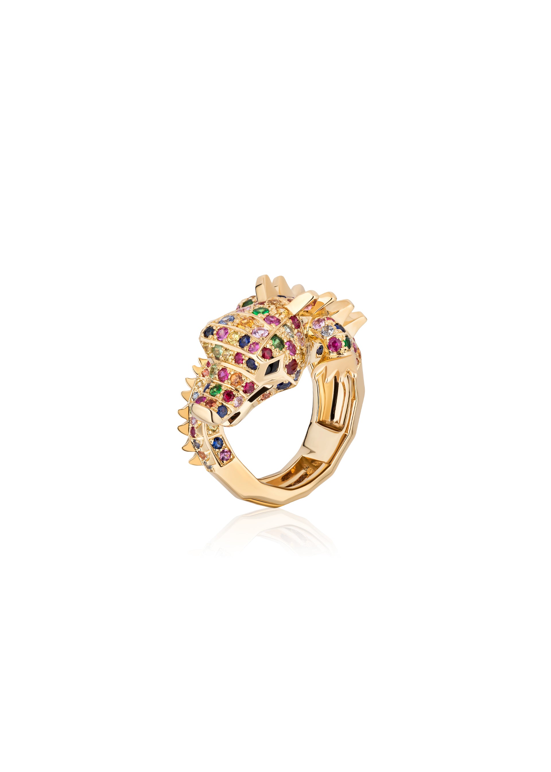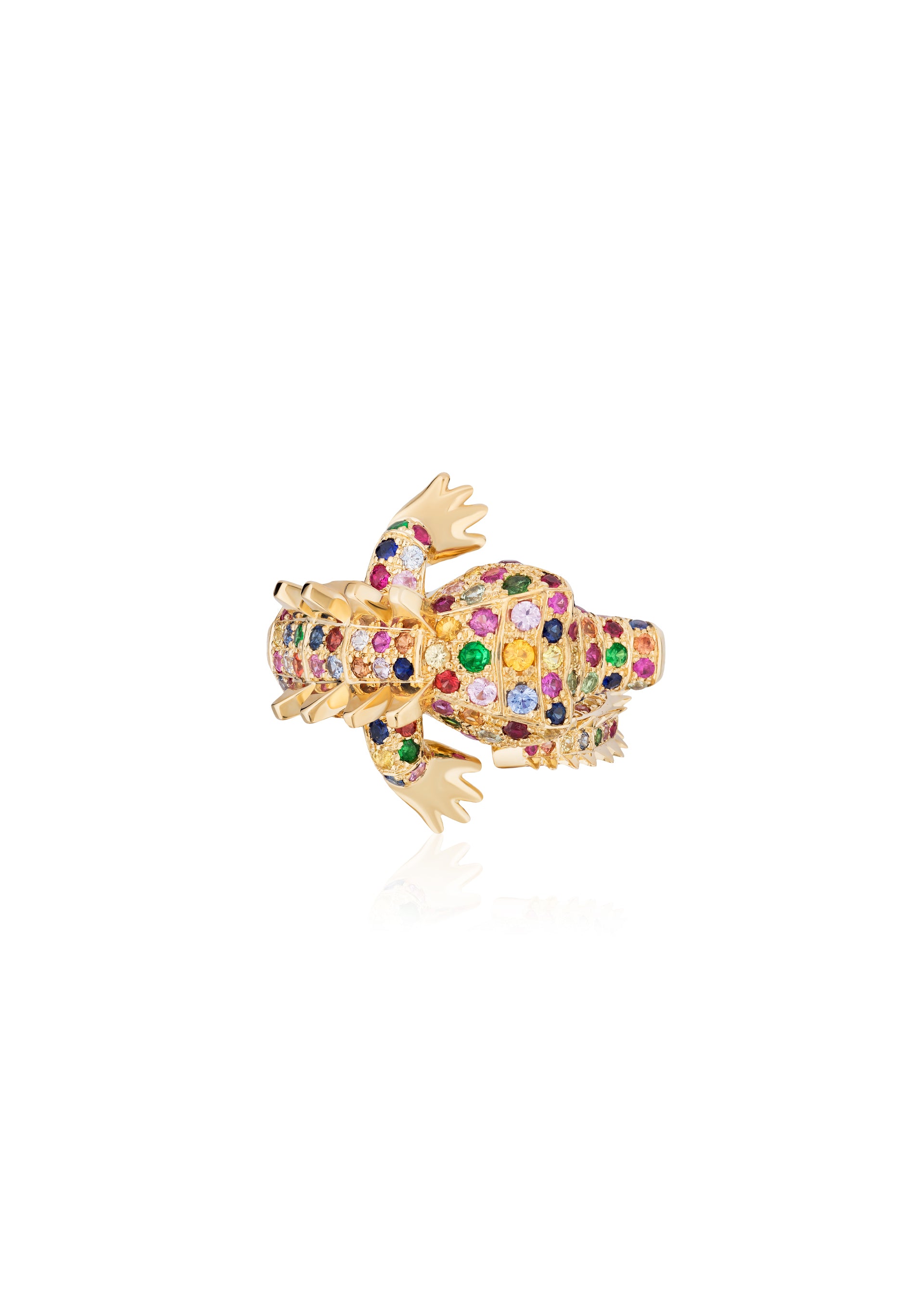 A fierce expression of strength and survival, this crocodile ring wraps around the finger with sculptural grace and a dazzling mosaic of color.