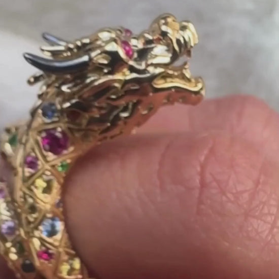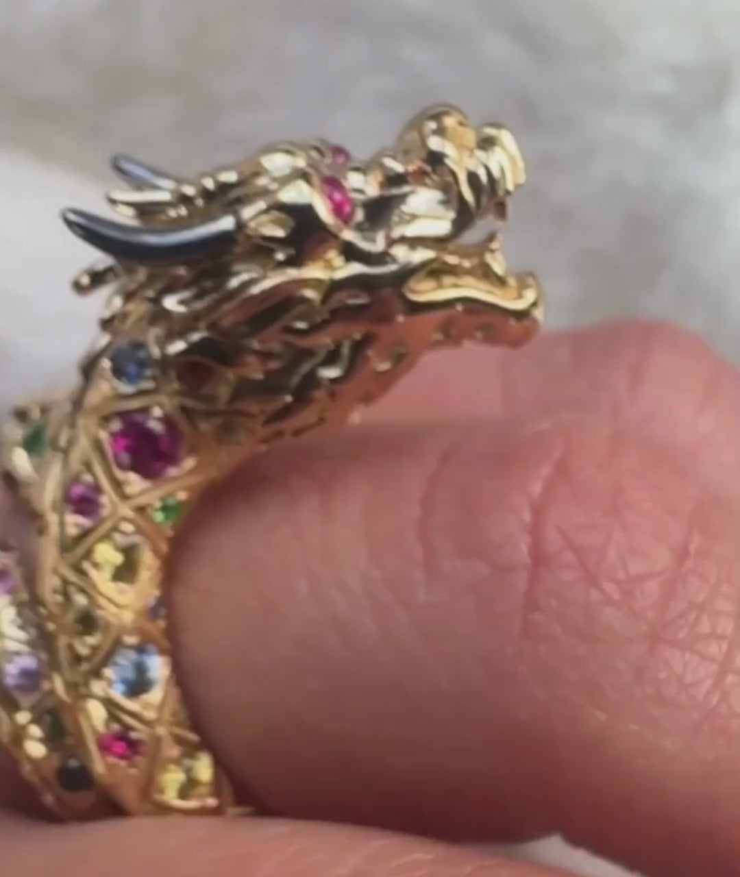 Boldly sculpted in gold, this coiled dragon ring ignites the finger with mythic presence—an untamed emblem of power, transformation, and fire-lit artistry.