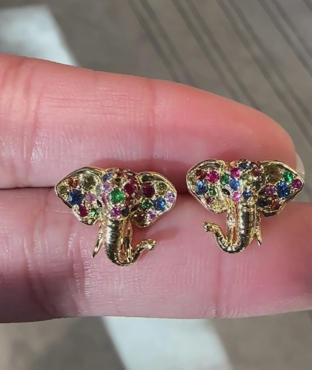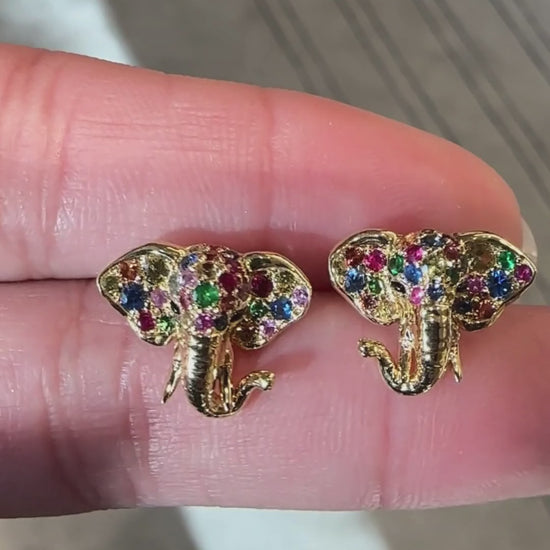 With wide arched ears and a gently curved trunk, these sculpted elephant studs capture a playful sense of scale in miniature form, detailed with vibrant pavé for a touch of wild charm.