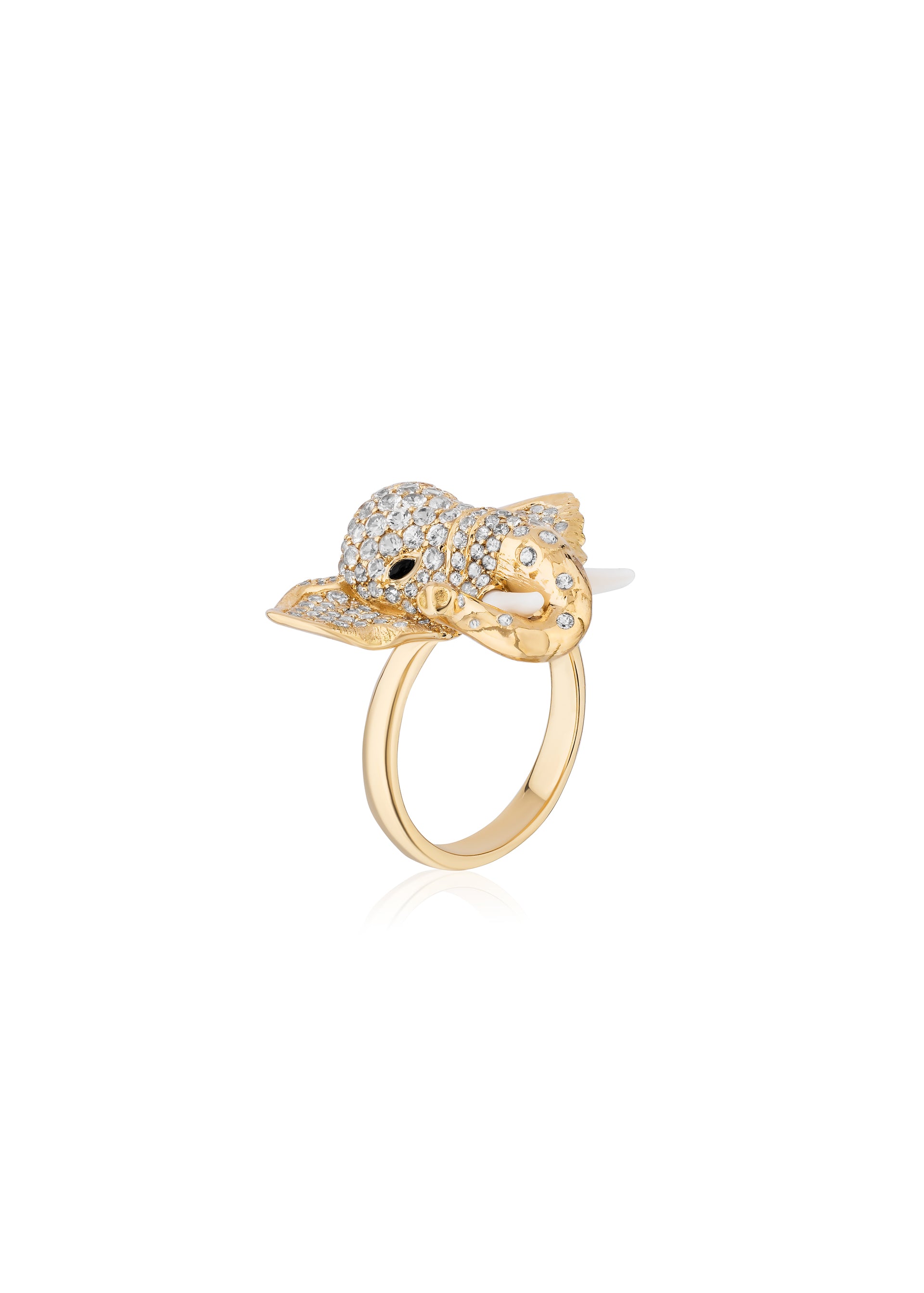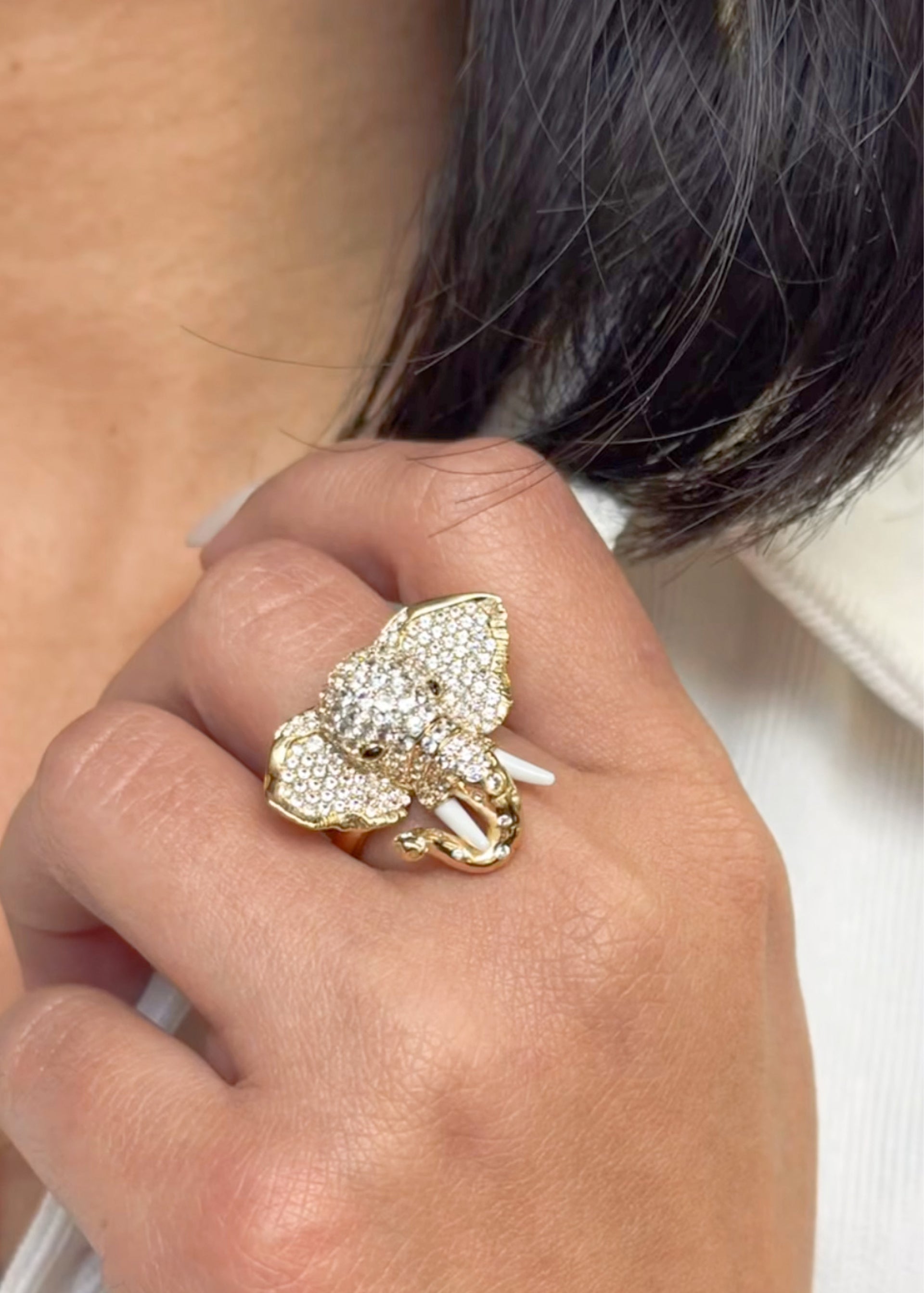 A tribute to strength and wisdom, this sculpted elephant ring roars with elegance in every detail.