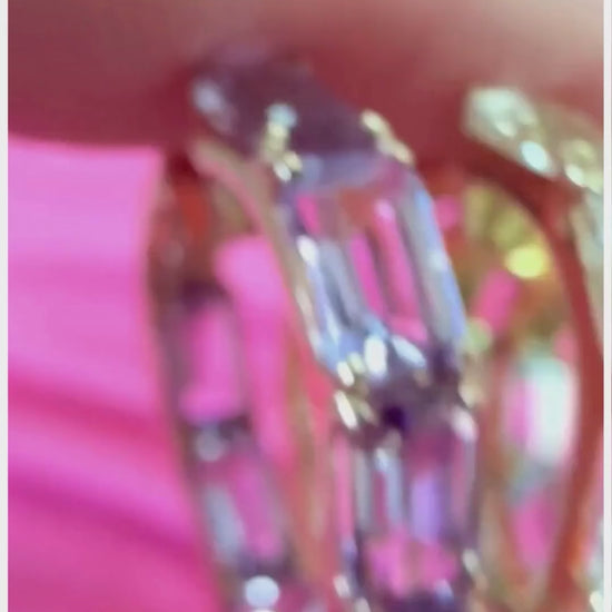 Shaped with subtle curves and edged in precision-set baguettes, these heart hoops strike a balance between playful romance and architectural edge.