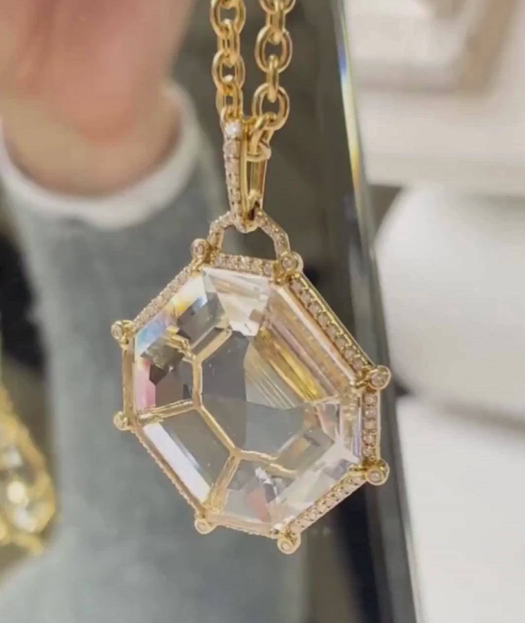 Framed in brilliance, this octagonal pendant channels bold femininity with a whisper of rebellion—signature Gossip energy.