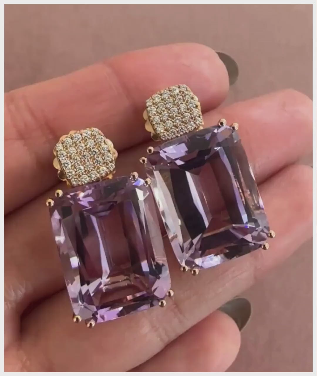 Bold emerald-cut drops dangle from pavé-set tops in this refined design from the Gossip Collection.