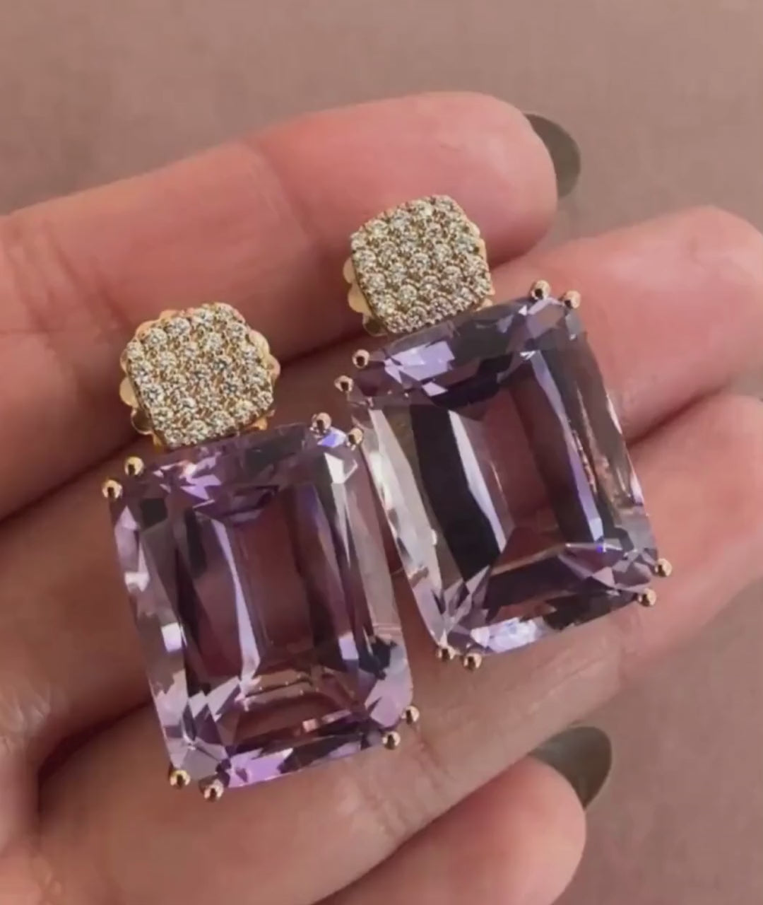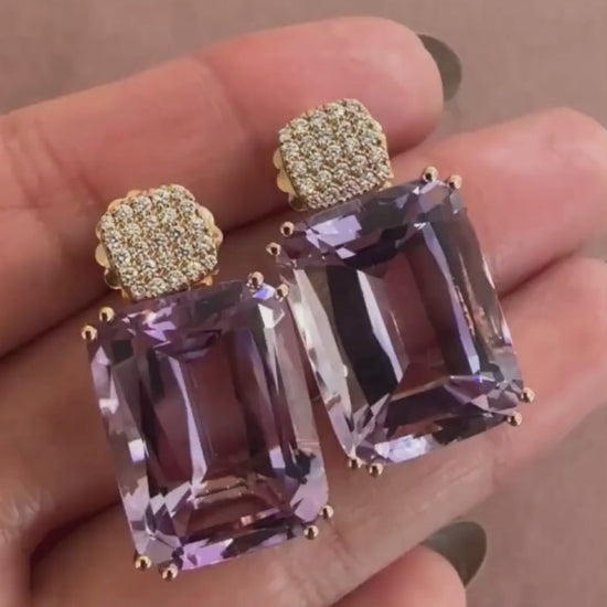 Bold emerald-cut drops dangle from pavé-set tops in this refined design from the Gossip Collection.